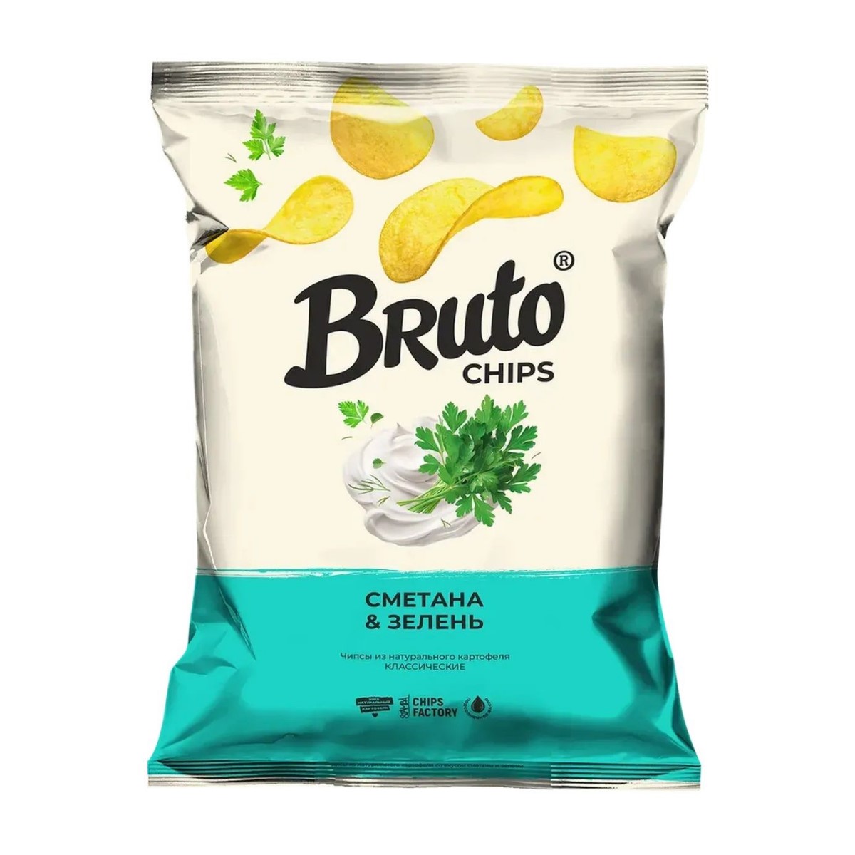 Ощутите вкус свежего летнего салата! Чипсы BRUTO «Сметана&зелень» – это хрустящее воплощение любимого сочетания в удобной упаковке.