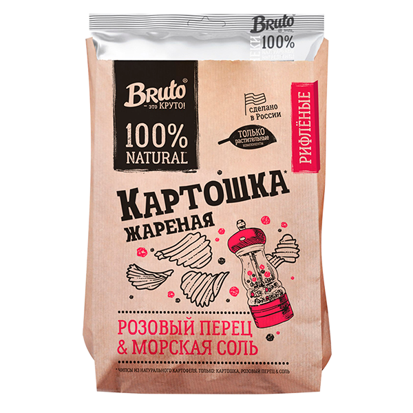 Чипсы картофельные рифленые BRUTO розовый перец и морская соль (130 г)