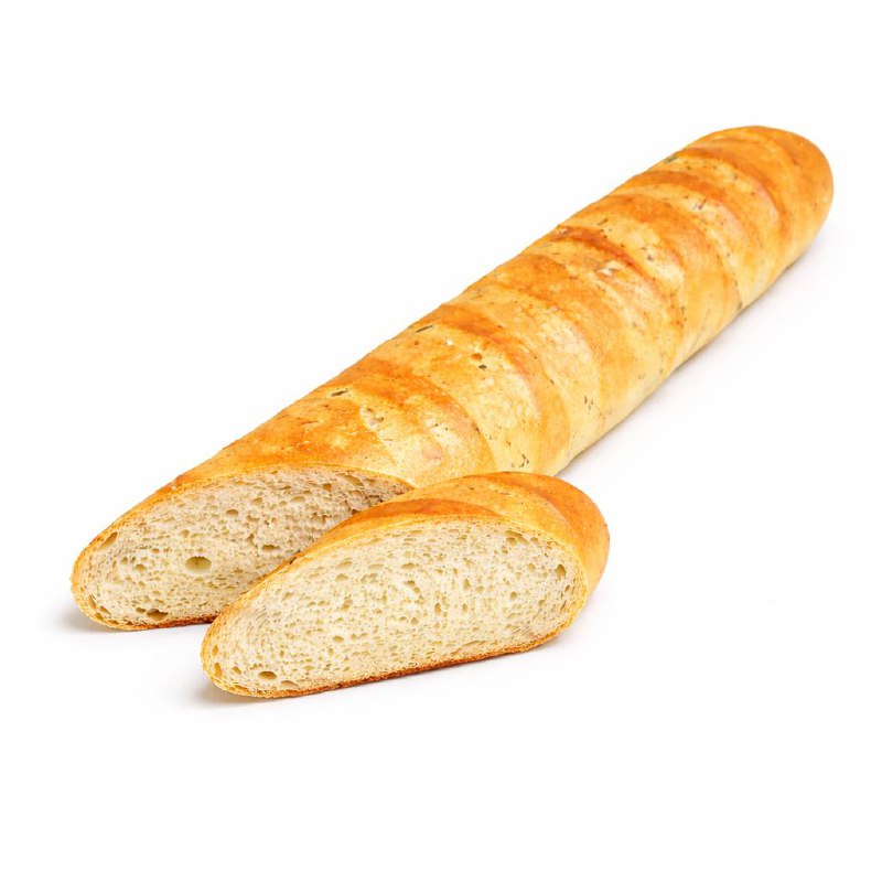 Французский багет — хрустящий снаружи и нежный внутри хлеб на натуральной закваске. Выпекается по классической технологии с добавлением ароматного чеснока и прованских трав, которые придают багету яркий, но сбалансированный вкус. Идеален к сырам, супам, салатам и как основа для брускетт.