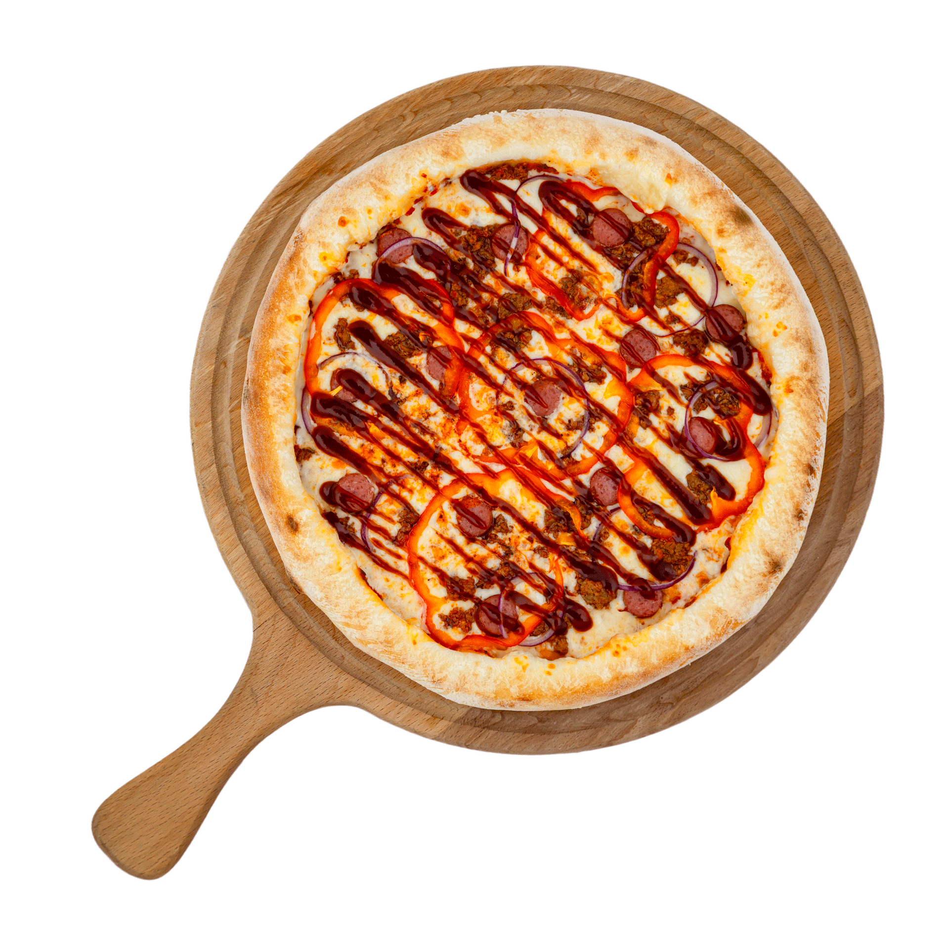 Пицца «Барбекю — сочетание традиционной итальянской пиццы с американским соусом «Барбекю. ⌀ 30 см. вес ~480 гр.