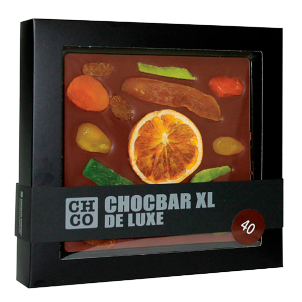 Огромная плитка молочного шоколада, оформленная крупными кусочками цукатов и мармелада. Это лакомство украсит собой любое чаепитие и станет изысканным сопровождением десертных, красных и белых вин с фруктовым вкусом. Его можно предложить к Мерло, Мускату, Рислингу, Совиньон Блан, а также к портвейну. Любителям новых вкусов предлагаем попробовать шоколад в сочетании с "ледяными" винами (Icewine).