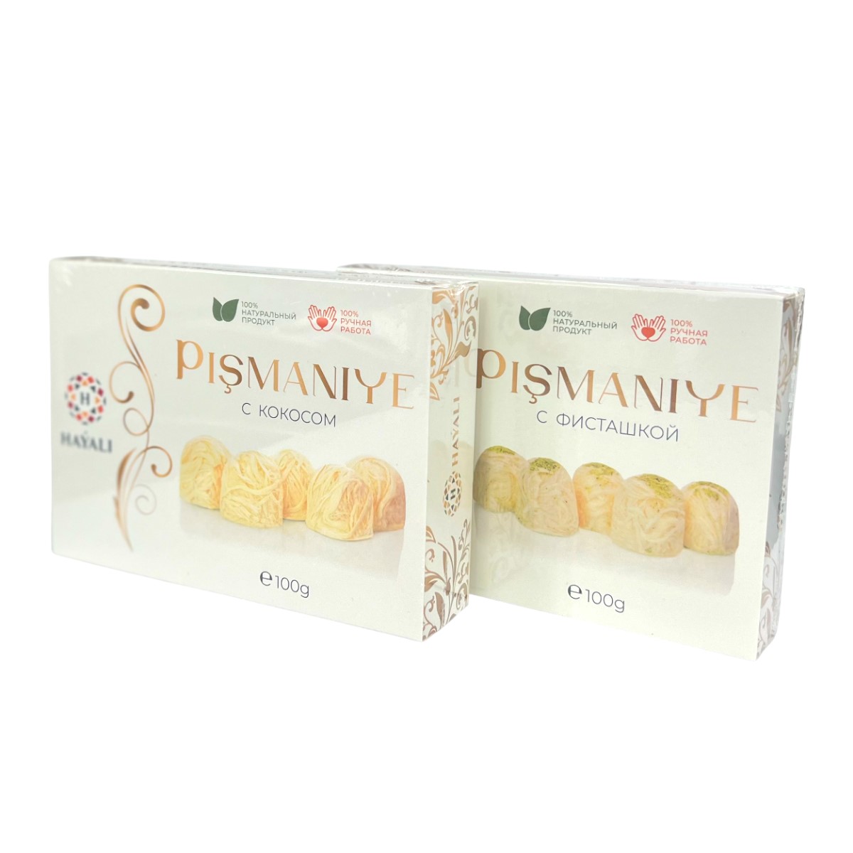 Состав пишмание с кокосом: Мука пшеничная хлебопекарная высшего сорта, сахар, патока крахмальная карамельная, масло сливочное, орехи кокосовые высушенные, измельченные (кокосовая стружка), вода питьевая, ароматизатор пищевой «ваниль», регулятор кислотности - лимонная кислота. Состав пишмание с фисташкой: Мука пшеничная хлебопекарная высшего сорта, сахар, патока крахмальная карамельная, масло сливочное, фисташки, вода питьевая, ароматизатор пищевой «ваниль», регулятор кислотности - лимонная кислота.