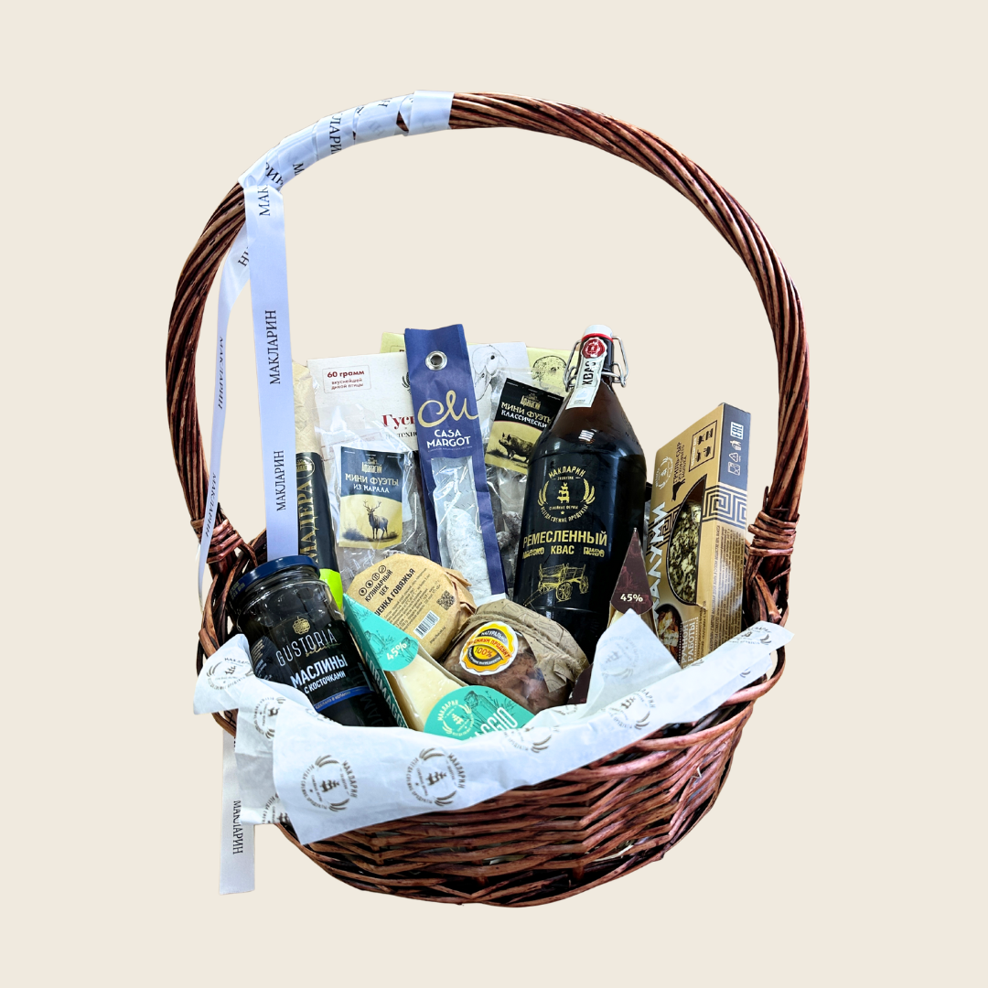 Каждый продукт в этой корзине — воплощение мастерства и качества, идеально подходящее для особого подарка.