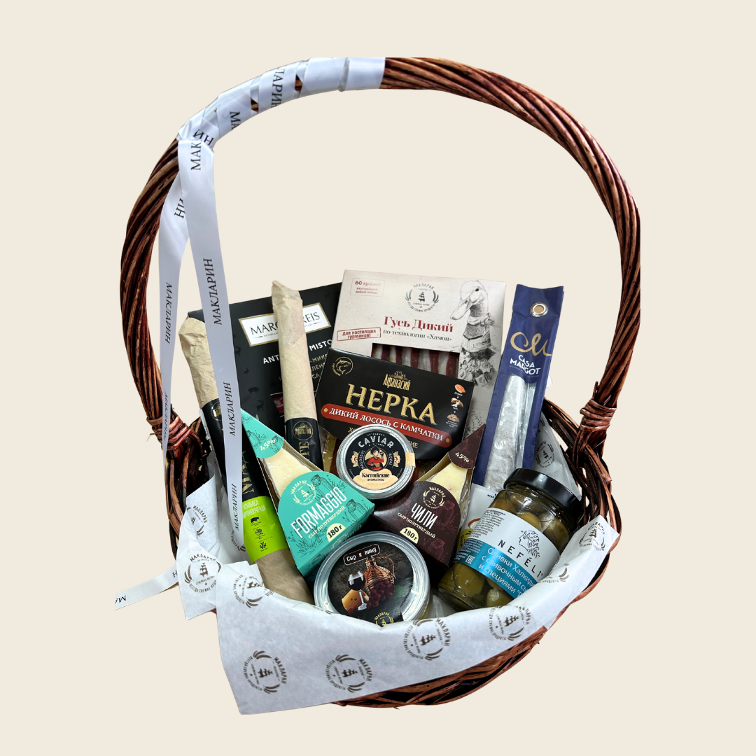Каждый продукт в этой корзине — шедевр гастрономического искусства, созданный, чтобы оставить незабываемое впечатление и подчеркнуть особое отношение.